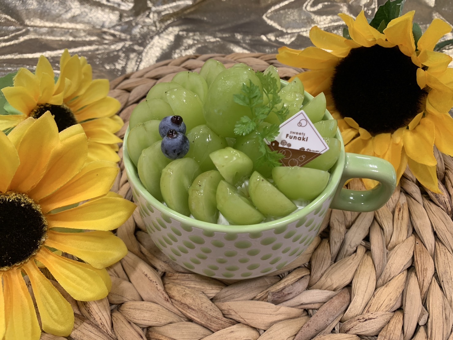 田主丸産の甘くてみずみずしい、旬のシャインマスカットを使ったケーキが登場しています。
